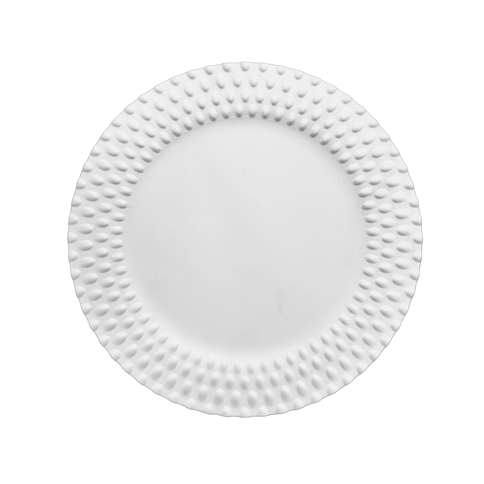 Réalisée en pierre d’acrylique blanche ou marbrée, elle associe minimalisme et relief maîtrisé. Son contour texturé crée un contraste délicat avec la surface lisse centrale, apportant profondeur visuelle et structure à l’assiette.