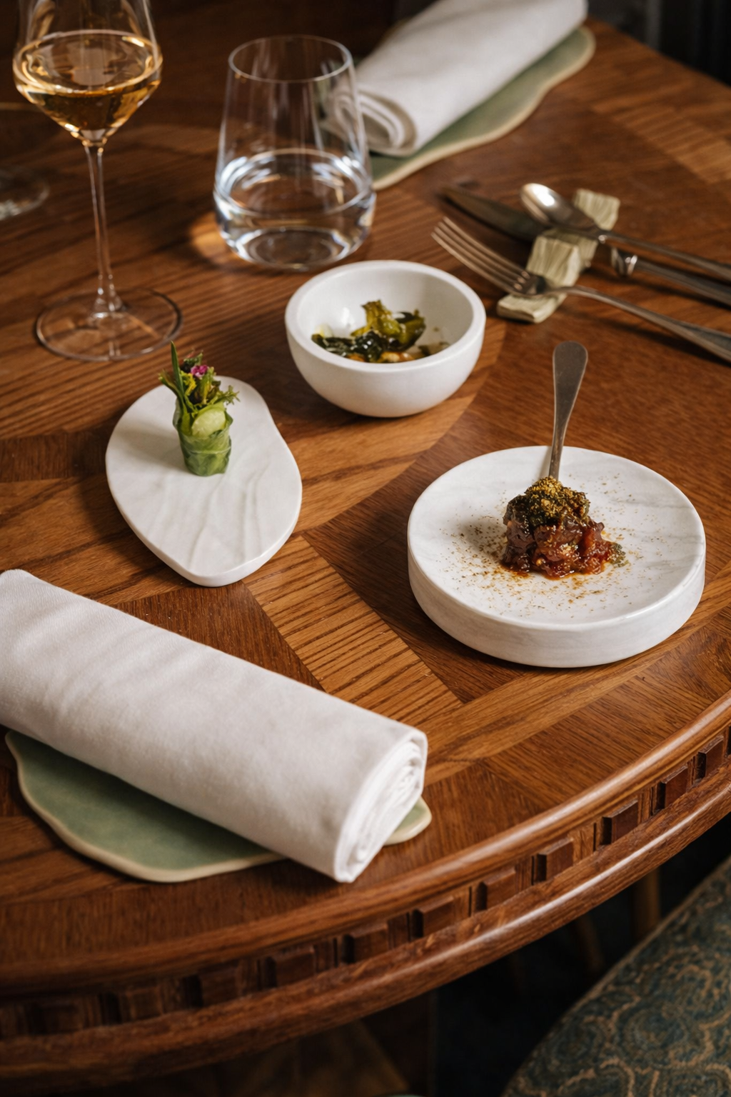 Ses lignes libres et naturelles créent un jeu de volumes subtil, idéal pour mettre en valeur mignardises, amuse-bouches, pièces cocktail ou créations pâtissières. Le socle élève la présentation, offrant relief et hiérarchie visuelle à la table ou au buffet.