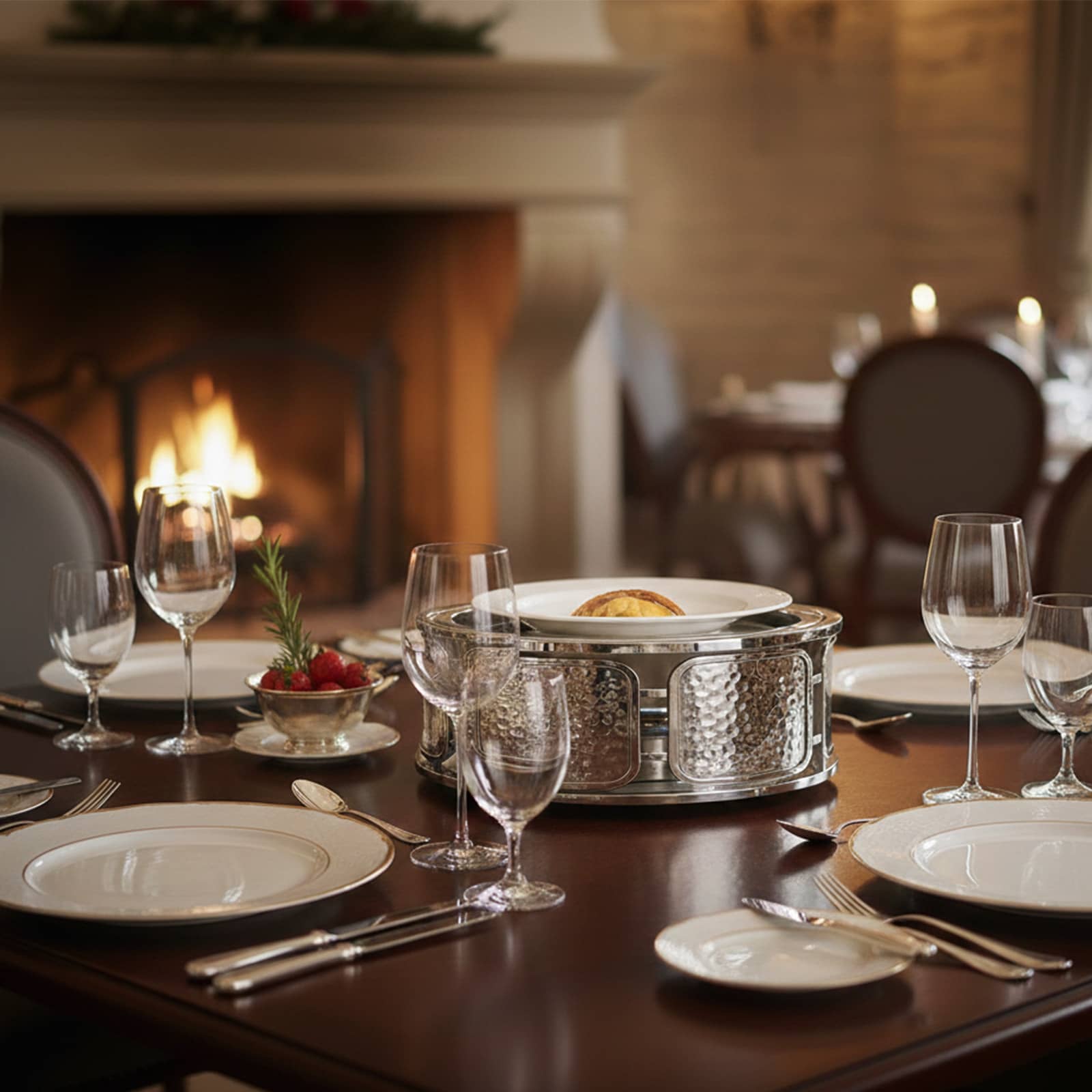 Le Réchaud Rond Martelé allie fonctionnalité professionnelle et présence architecturale sur table ou buffet.