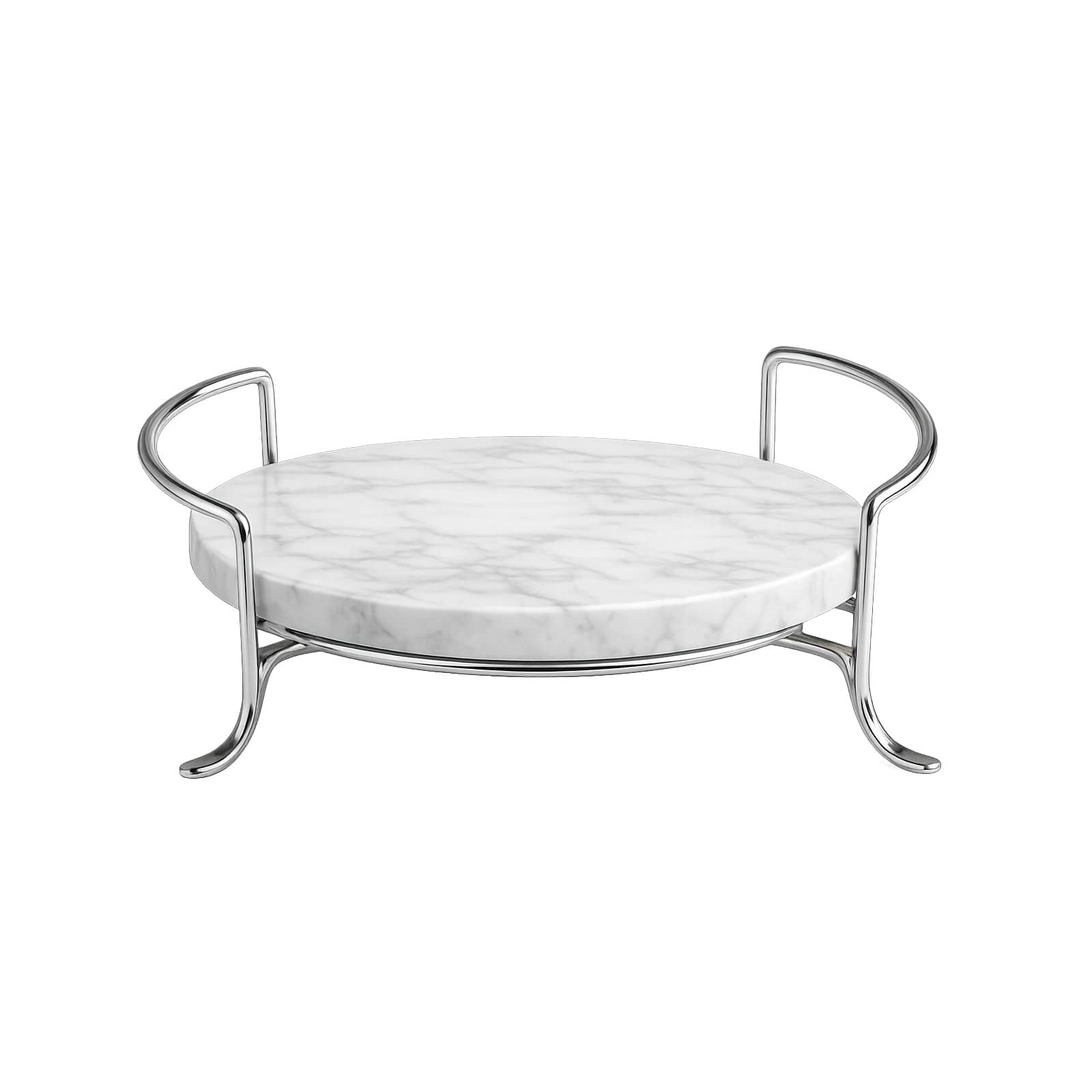 Conçu pour maintenir les plats au chaud tout en assurant une présentation stable, il se compose d’une structure en métal argenté poli aux lignes épurées. Ses poignées latérales intégrées facilitent la manipulation tout en préservant l’harmonie visuelle de la pièce.