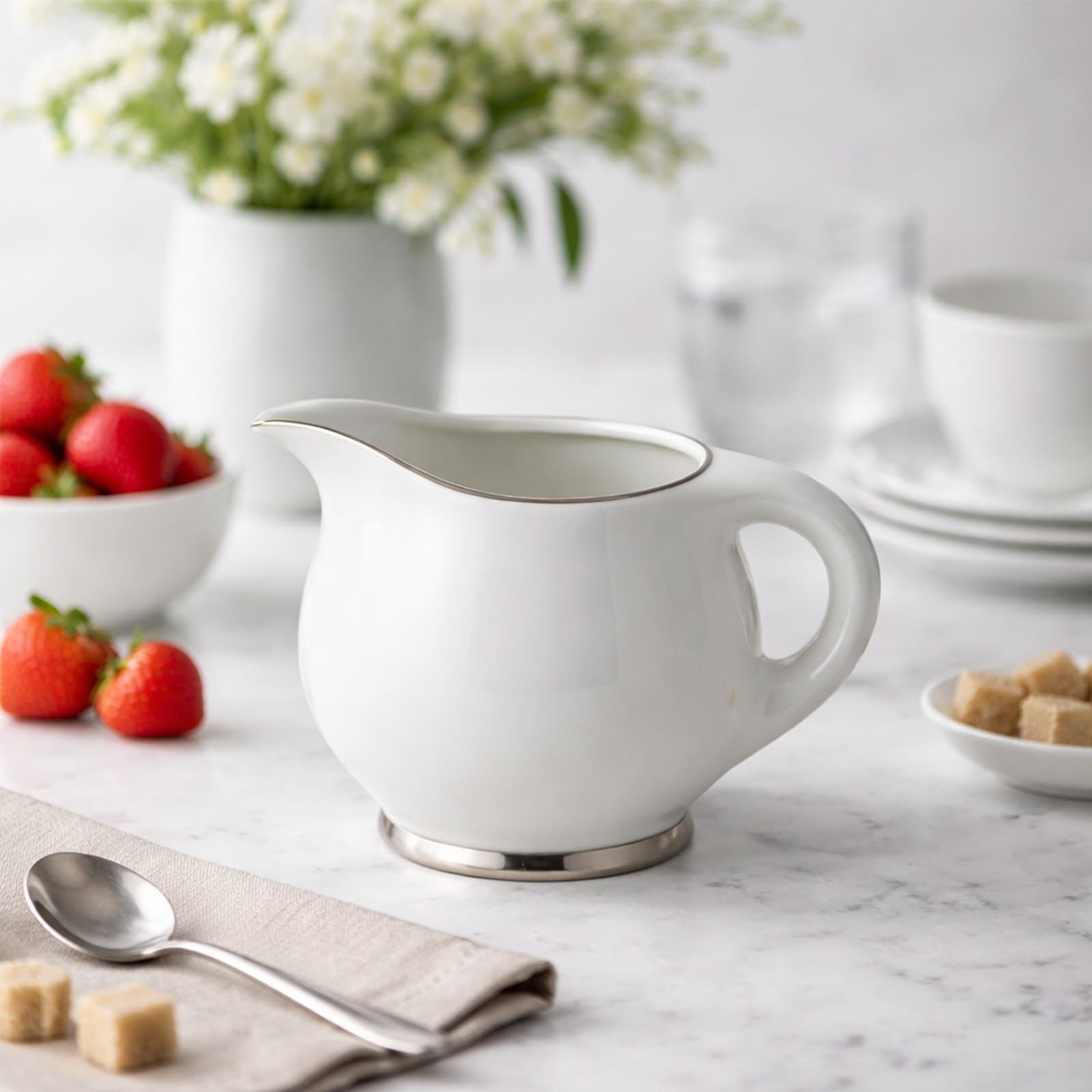 La Verseuse Parure incarne la finesse et l’élégance discrète du service en porcelaine.